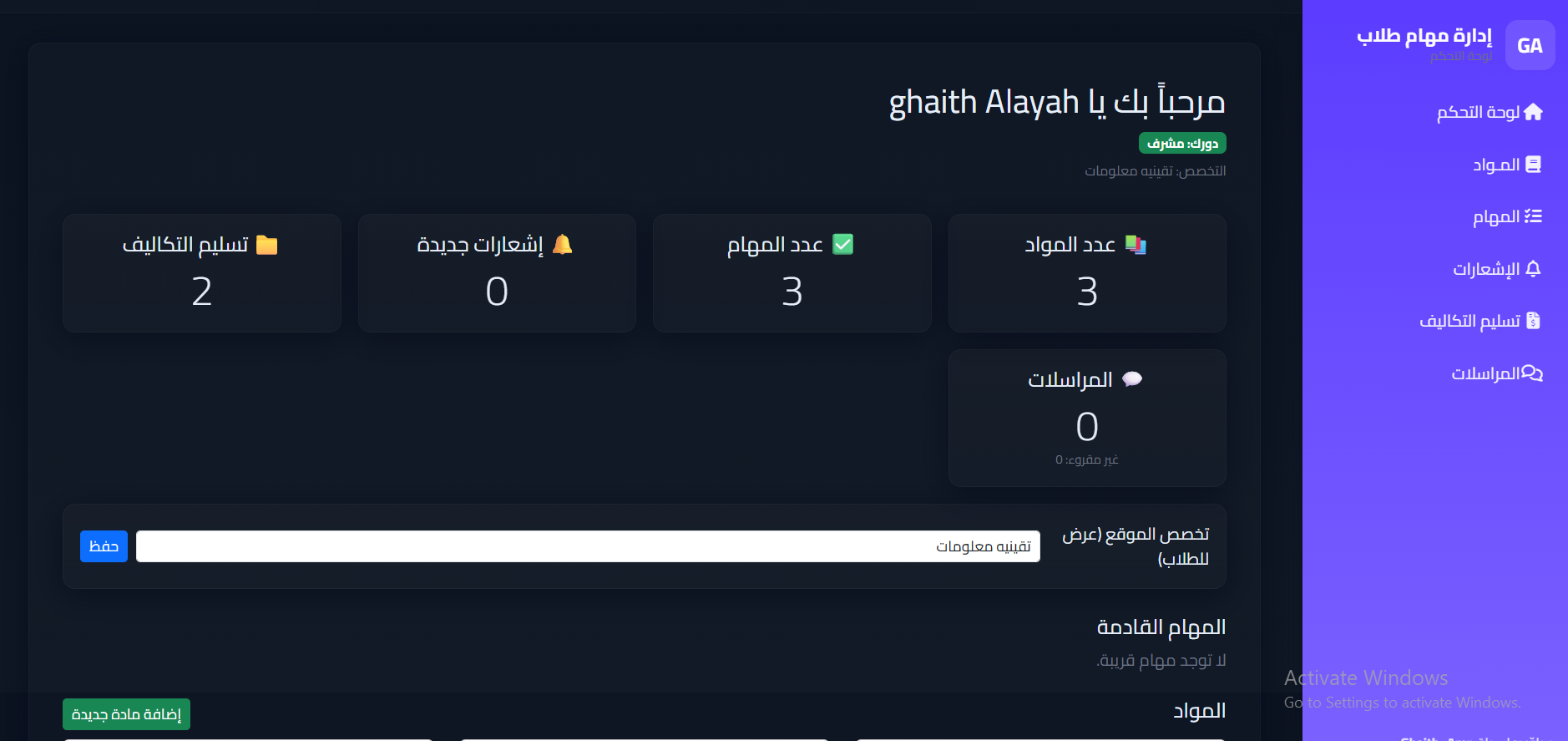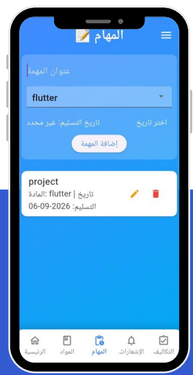 تطبيق متكامل لإدارة المهام الأكاديمية والمواد الدراسية باستخدام Flutter و Laravel.